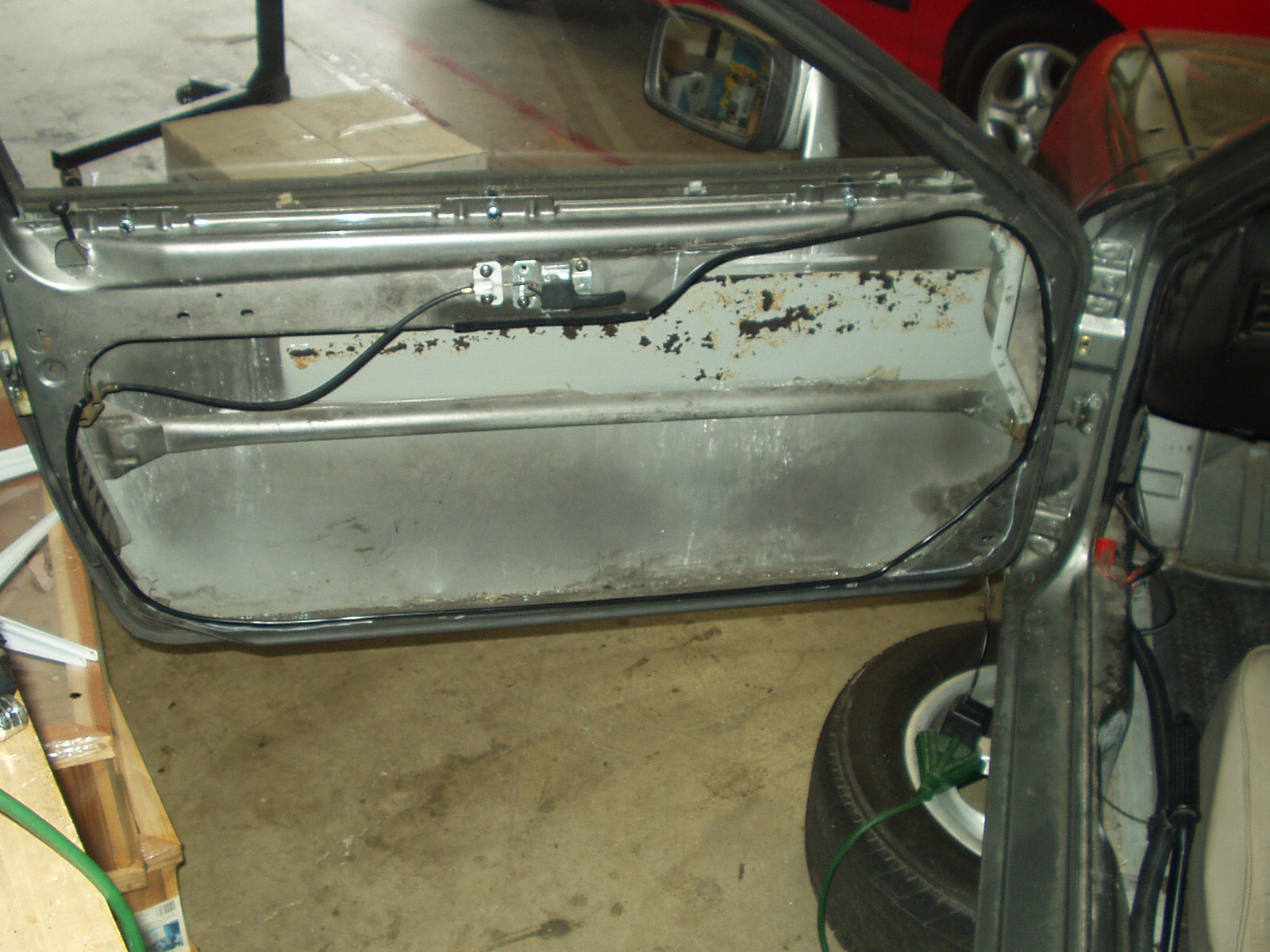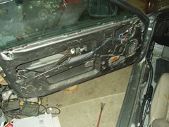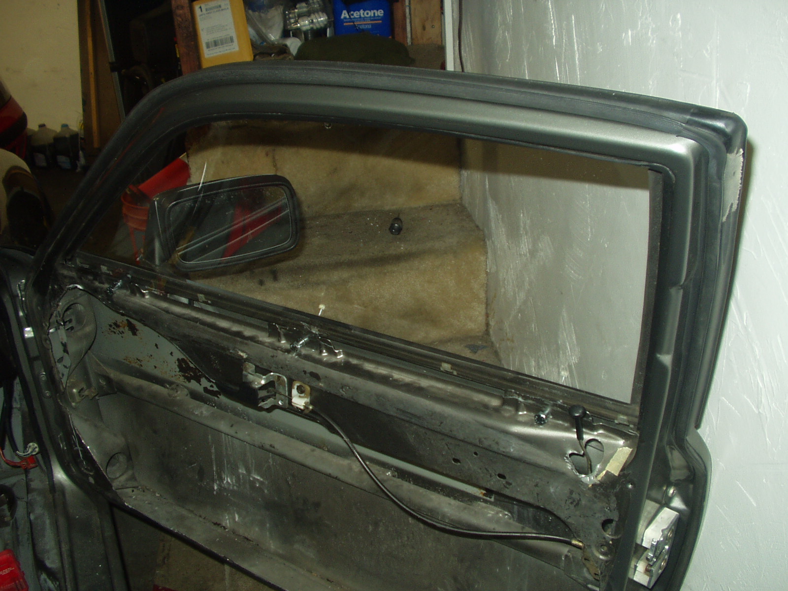 With the door panels off, windows and related BS removed, I began feverishly cutting. Then bending. Then cutting some more. Then bending. Then drinking a beer and inspecting the burn marks from flying molten metal. Then finally muscling the damn section out.