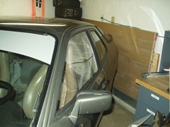 I rather liked having windows, due to the fact that I drive the car to and from events (for the time being anyway). The solution came in the form of 1/4" thick plexiglass sourced online for $30 shipped for enough to do both sides. I traced the stock glass onto the paper backer of the plexi and my brother so kindly cut them out for me. With the rough edges filed down, it fit pretty damn well. I did have to use an air sander to trim a few high bits, but that was my fault by drawing the lines like a drunk.