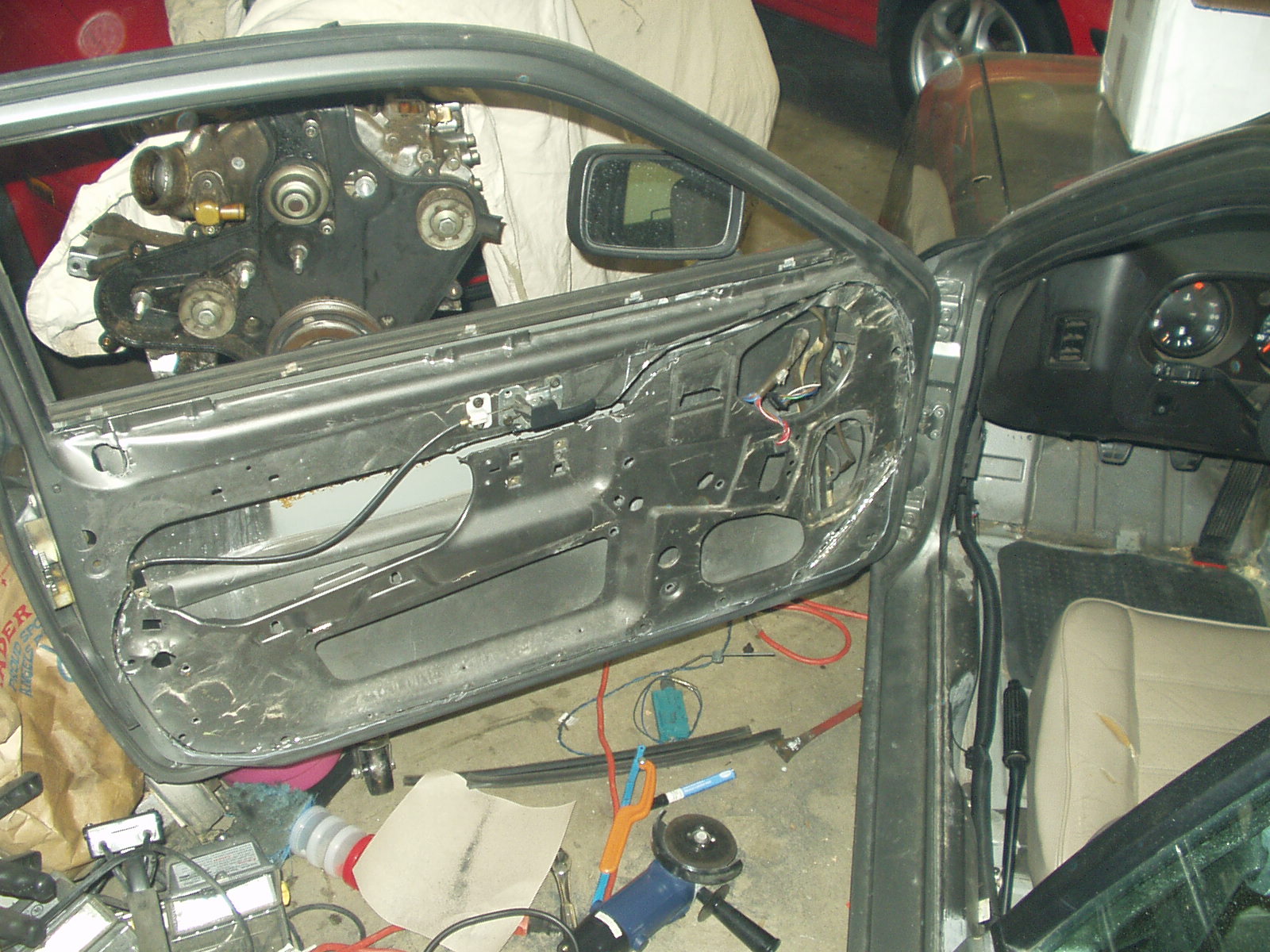 Okay, back to business. Just about the only 'street' items left in the car during the interior gutting were the door panels, windows, regulators and motors. Basically wasted weight.