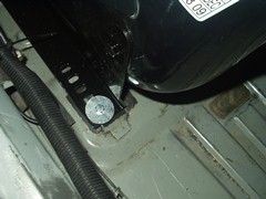 The Sparco side mounts lined up pretty well with the factory mounting pads, but new holes had to be drilled. No biggie, since I wanted to mount them thru the floor pan with large bolts and fender washers. All in all, it makes the cool look very much improved.
