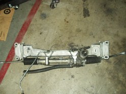 Okay, so now onto the really sketchy part of the operation. I didn't have any help around, as usual, so I lined up the crossmember and engine mounts on a jack and wobbled the whole assembly into place without losing the whole damn thing. I don't recommended this be done alone. I could have easily dropped it, cracked the crossmember or steering rack. Everybody gets there thrills in different ways, huh? Of course the engine mounts didn't line up with their holes; what a shock. The C-clamp came in very handy here as well. I smashed those bastards into place and mounted them up; then I installed the crossmember bolts and sighed a huge breath of relief. Now the engine is supported and the only big PITA left is the steering shaft. The procedure said to paint or mark the orientation, but good luck getting all that to line up again perfectly; I voted to just realign the steering wheel.